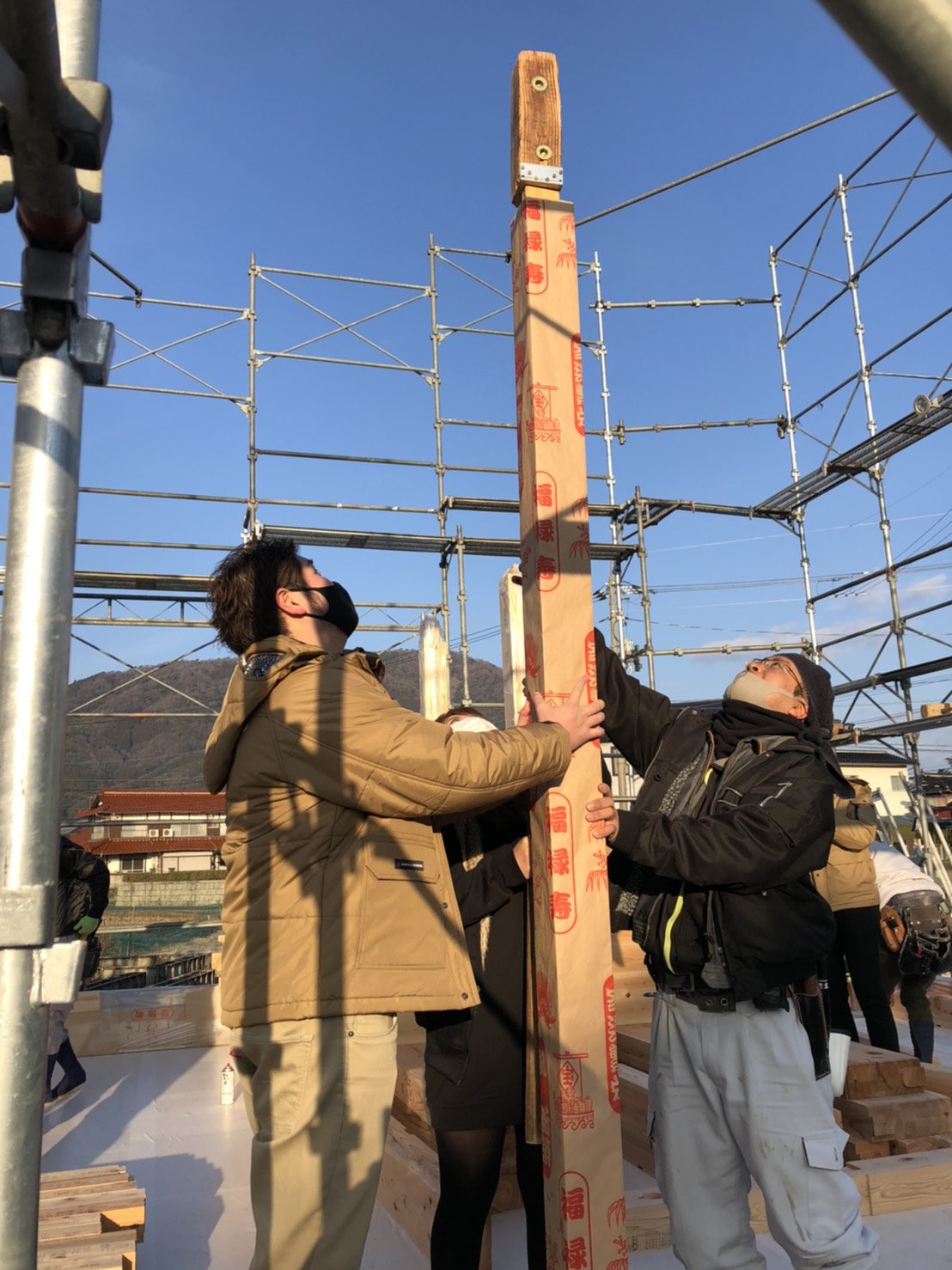 ホーム > ただいま施工中 >【設計細澤邸上棟でした!】【広島注文住宅】Vol188 ただいま施工中 EXECUTION 【設計細澤邸上棟でした!】【広島注文住宅】Vol188 投稿日:2021.02.5 一覧に戻る 本日 弊社設計スタッフの細澤邸上棟でした! 晴天の中始まった棟上げ!朝一はお客様にも上棟の際やっていただいている、一本目の柱建てを! 力強い柱が一本立ちました! 夕方には外周部のダイライトも可能なところまで全部終わりました! こだわりが詰まったお家プロジェクトスタートです!!