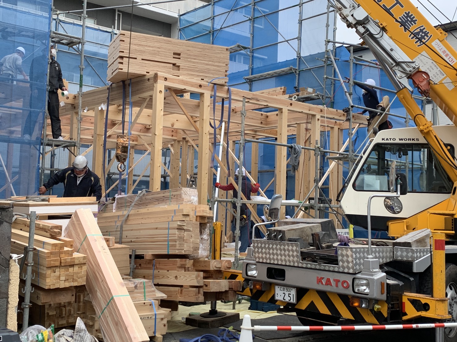 大工さん1人1人の技術にはいつも感動させられているのですが、こういった連携での作業でも職人の技が見えます。