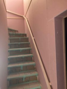 佐伯区F様邸階段施工中です。