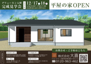 完成見学会のお知らせです! 12月17日(土)・12月18日(日) 東広島市 グリューネン入野にて平屋見学会を行います! 大喜らしい、自然素材をふんだんに使ったおしゃれなお家です😊 施工例を見るだけではわからない、自然素材の心地よさ・高性能住宅の暖かさを体感できる機会です! 是非目で見て、肌で体感しに来てください🙌 予約制で個別案内をさせて頂きます!お気軽にご予約ください! ご予約はこちらから!↓