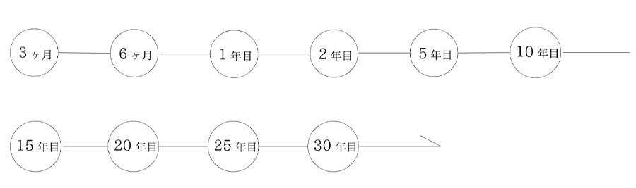 定期点検は3ヶ月 半年 1年 2年 5年 10年 15年 20年 25年 30年と実施しております。