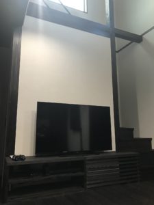 わが家の床置きエアコンは階段と組合わせて作成した TVボードの中に設置しています。