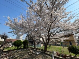 先日 東広島H様のお宅へお伺いした時に庭に咲いてる桜が満開でした 2世帯住宅(3世帯同居)に建て替えをされますが、