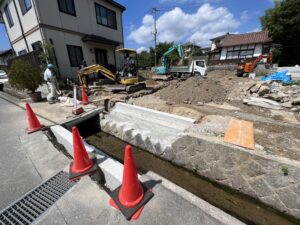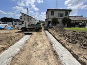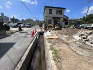 西条駅から徒歩7分5区画予定の注文住宅用地【biogarten西条東北町】の造成工事が進んでいます。盆明けには検査を終えて販売開始となります。