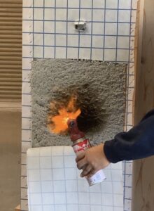 弊社でも採用させて頂いてる断熱材のセルロースファイバーの実験画像を入手しました。 ホウ酸が入っているので燃え広がらないので安心です。![]()