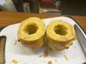 その名前は「ツリーホルン」を意味し断面が切り株のような模様に見えることからその姿が「切り株ケーキ」とも呼ばれます。この特徴的な外観は、蜂の巣状の層が積み重なっている様子を表現しているそうです。19世紀にドイツの宮廷で贅沢なお菓子として生まれました。