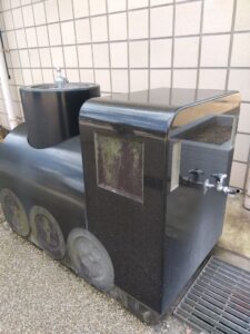 展望台を降りて目に入ったのがSLのオブジェの手洗い・水飲み場発見。密かに見つけました!