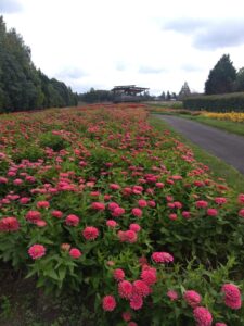一面に咲き誇る百日草を今まで見たことがなかったので色鮮やかな美しさに感動しました!花の広場には「花の展望台」があり、こんな立派な展望台あったかな…?と思っていたら2018年にリニューアルアルして建設されたそうです。