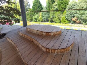 展望台は開放的なデザインで杉の素材で作られていました。