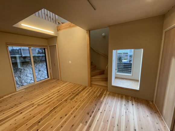 自然素材の床や珪藻土の壁、間取りをとても気に入って頂いたご様子で、この横の土地は空いてますか?