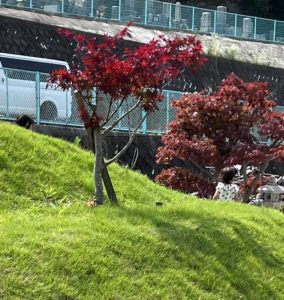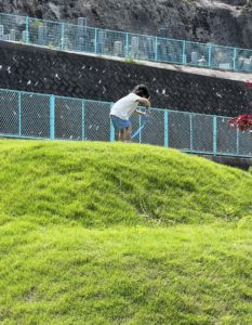 子供たちは芝生の山でソリすべりやシャボン玉を楽しみました!