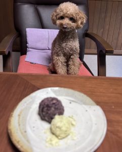 昨日は秋分の日でしたね。 台風の後朝晩肌寒いくらい 日中もやっと秋らしくなったかと思いきや 昨日のお昼は蒸し暑くまだクーラーや扇風機が活躍。 お彼岸という事で おはぎ!作りました。 (^▽^)/ しょこちゃん、めいちゃん用にも作りました! すごい勢いであっという間に無くなりました(^^)![]()